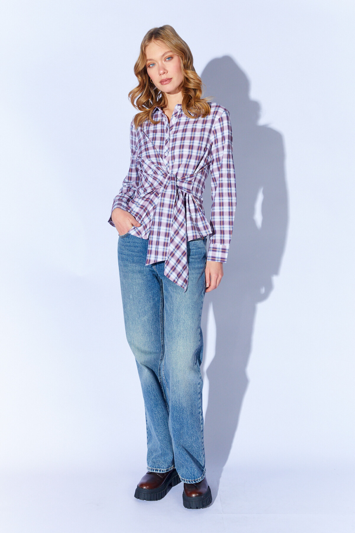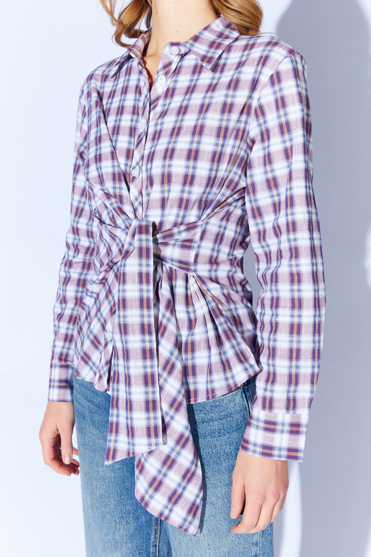 Ürün Detay : Bağlama Detaylı Ekose Gömlek | MKS1610822-1
