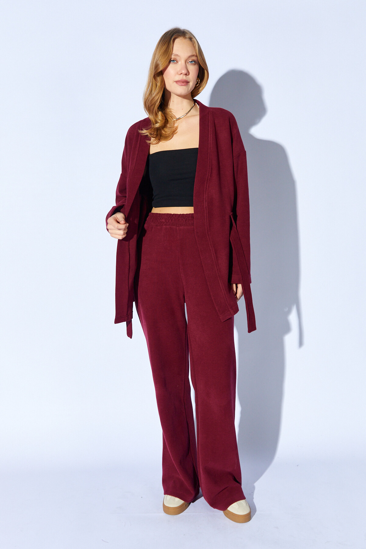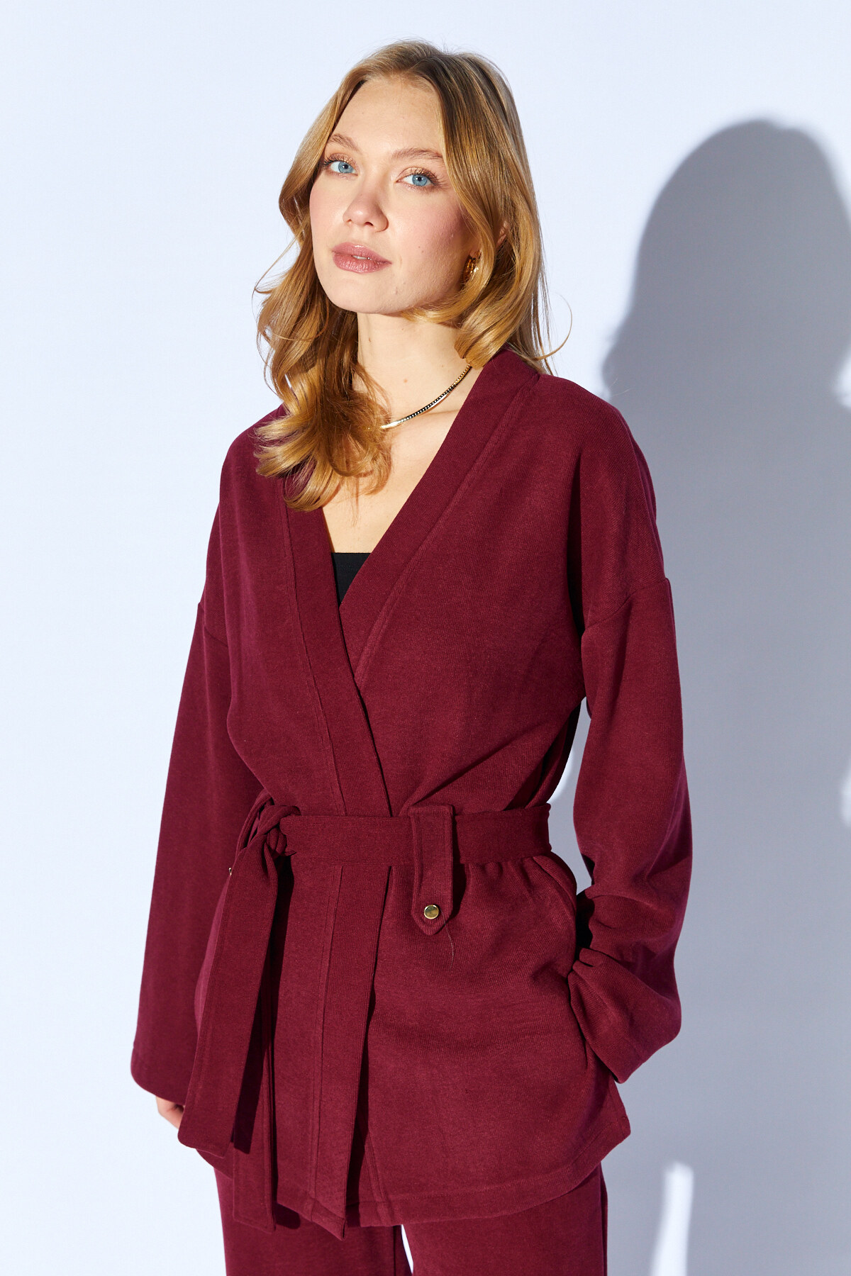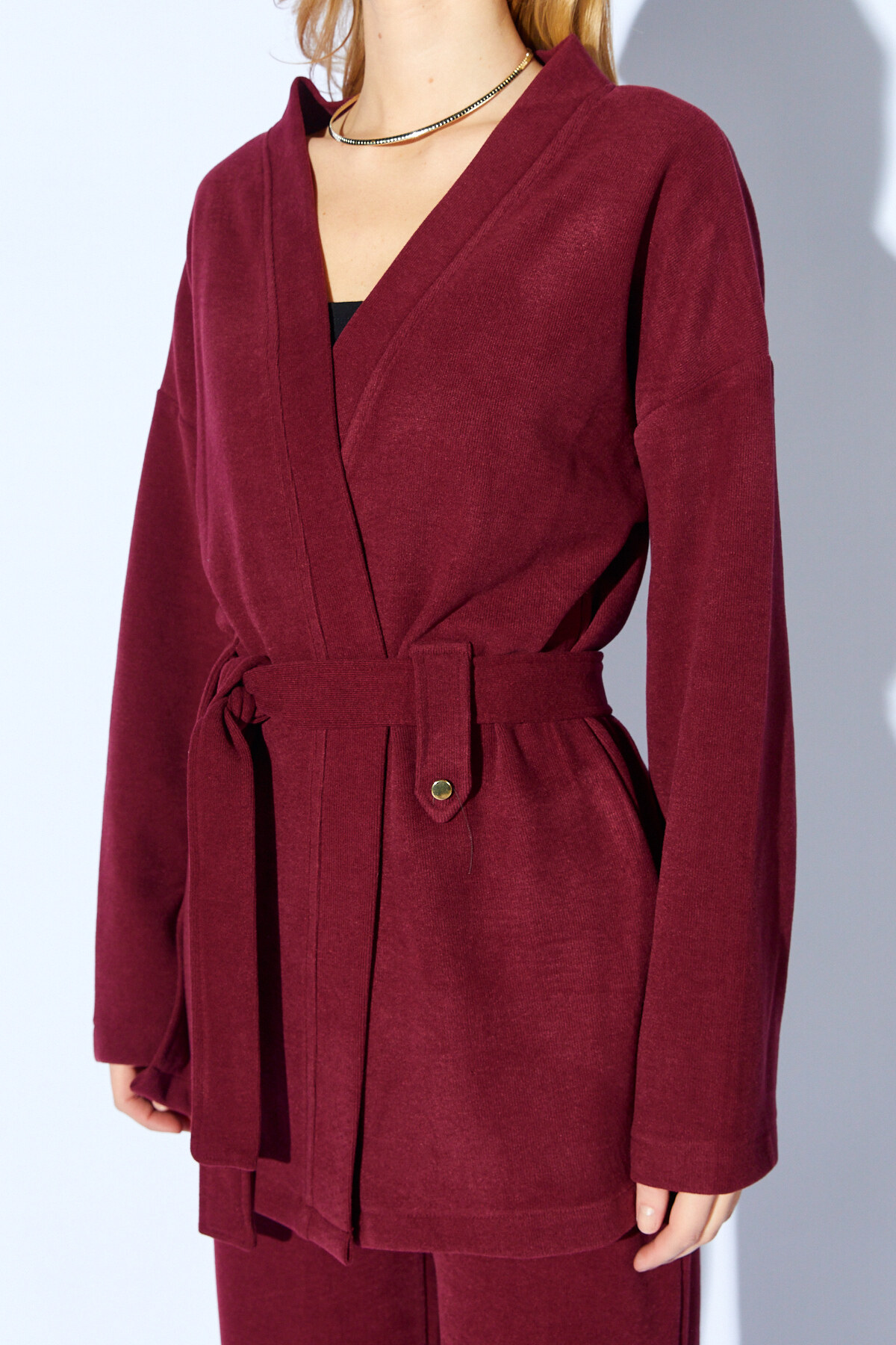 Bordo Yumuşak Dokulu Selanik Kumaş Kimonolu Takım | MKW1810392-1