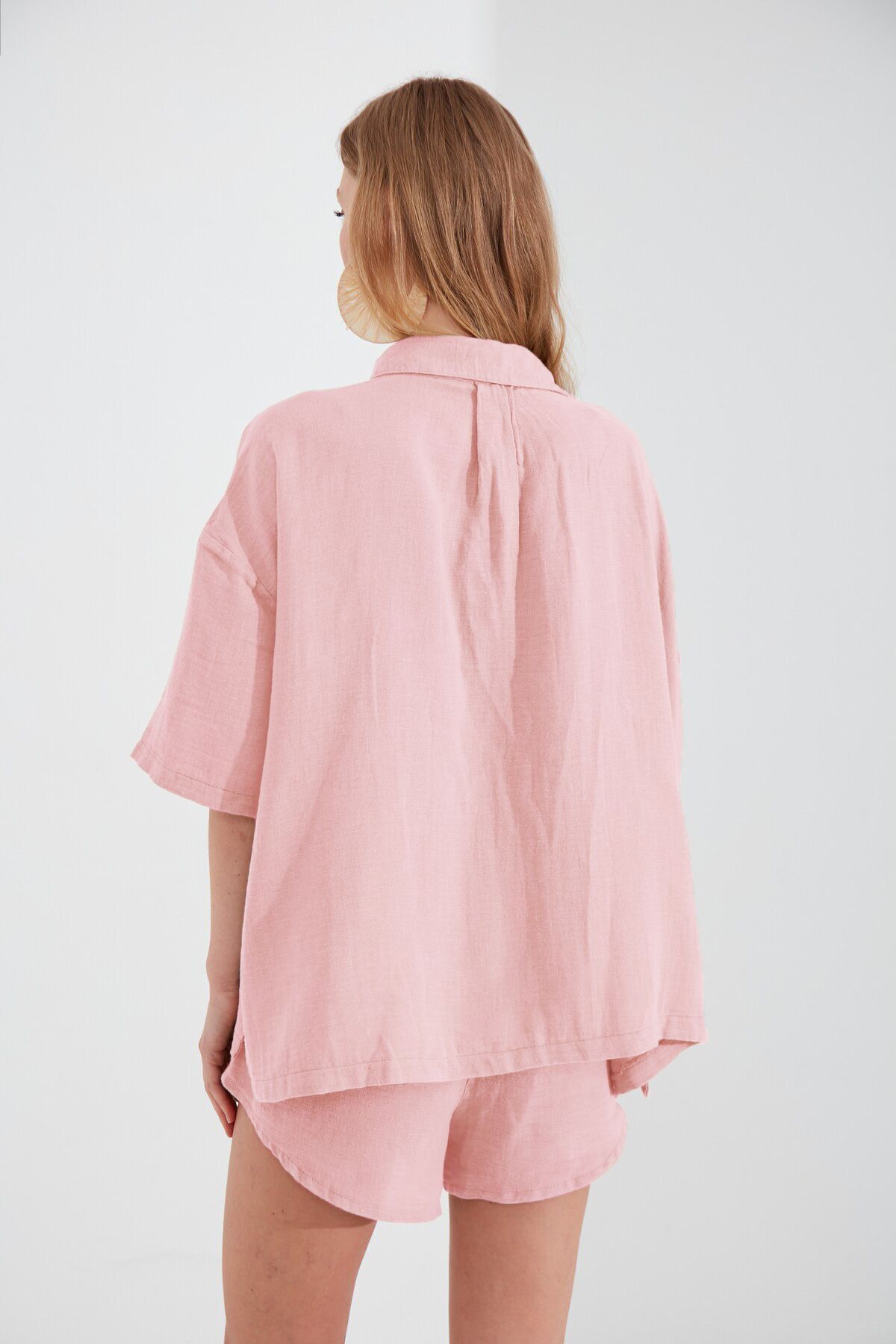 Gül Kurusu Müslin Kadın Oversize Gömlek | MKS166965-01