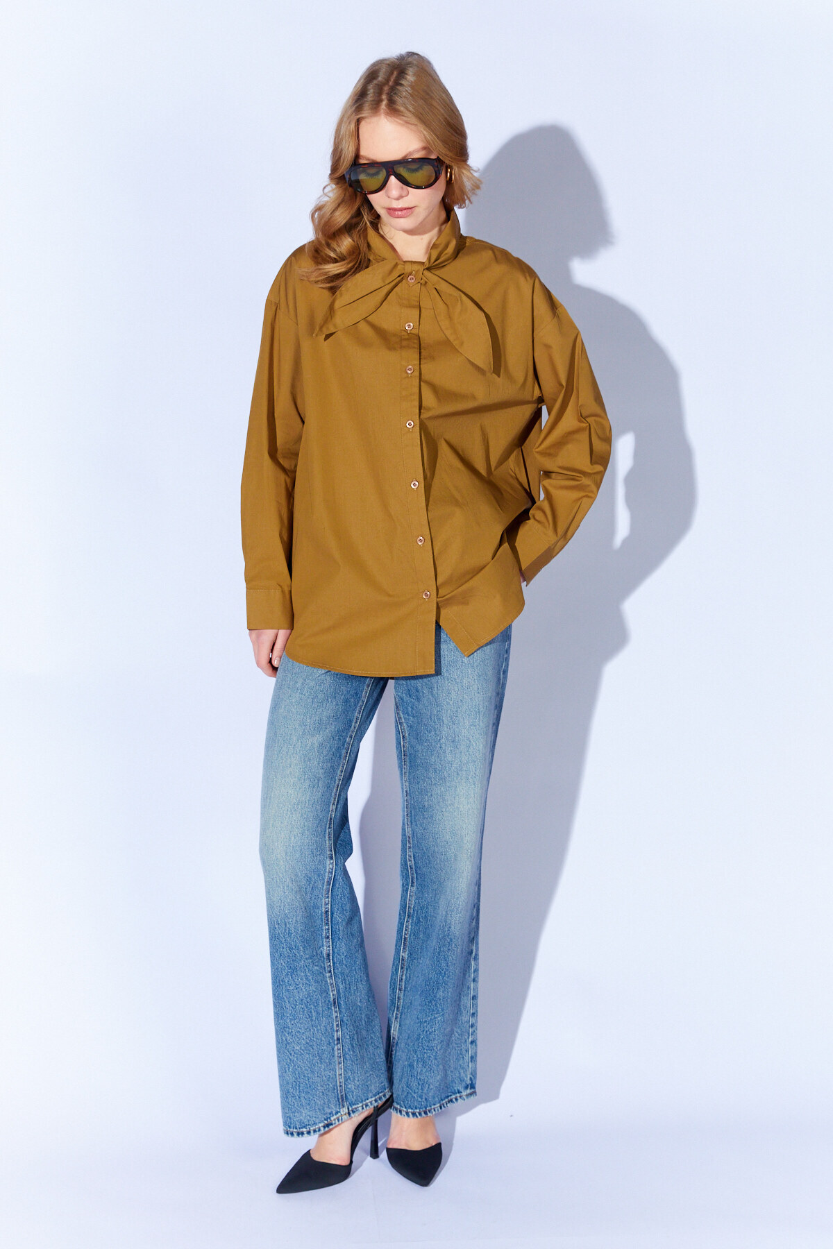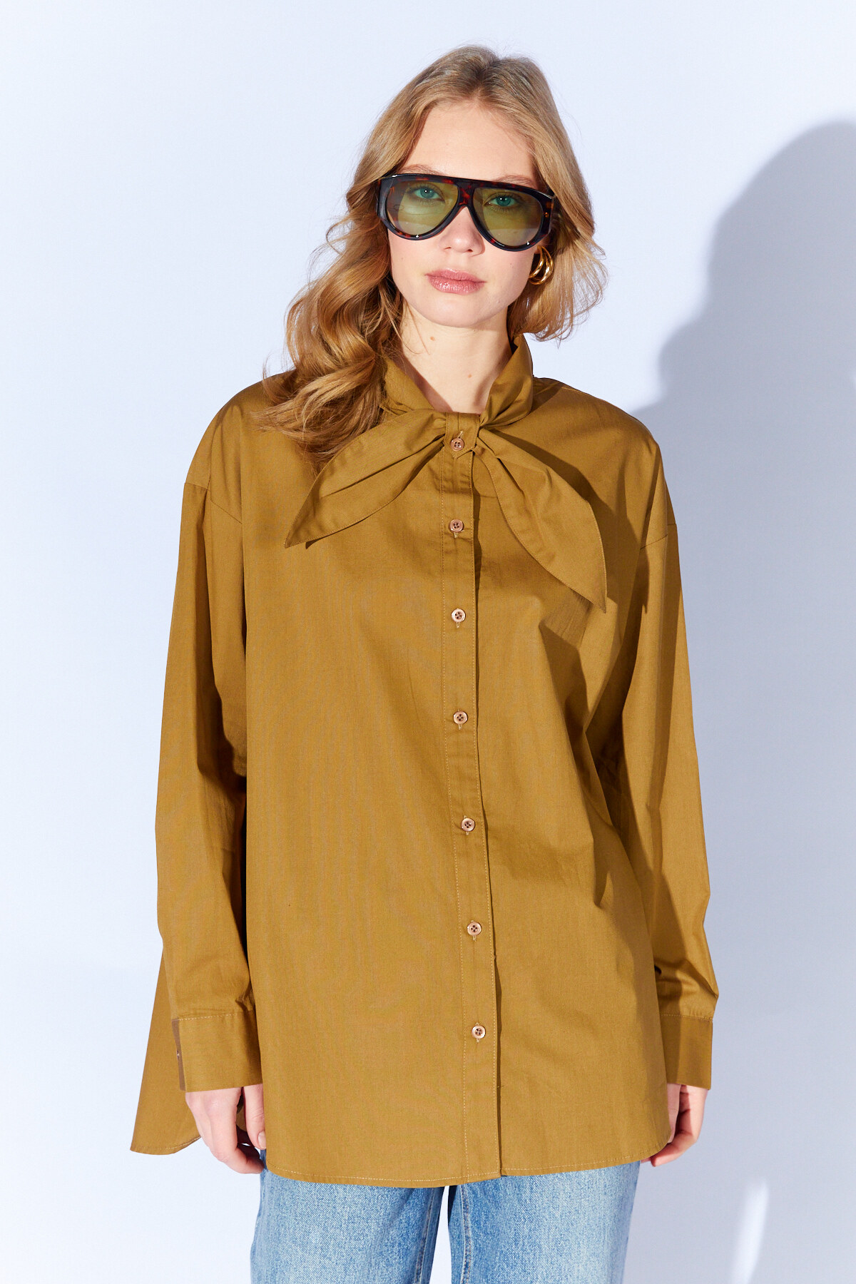 Kurdele Detaylı Gömlek - Kahve | MKS1610430-1