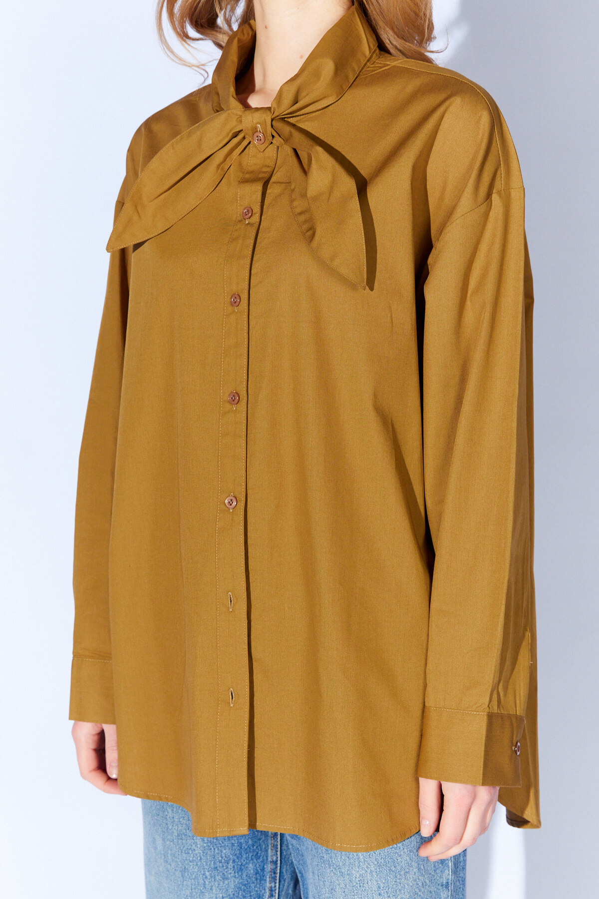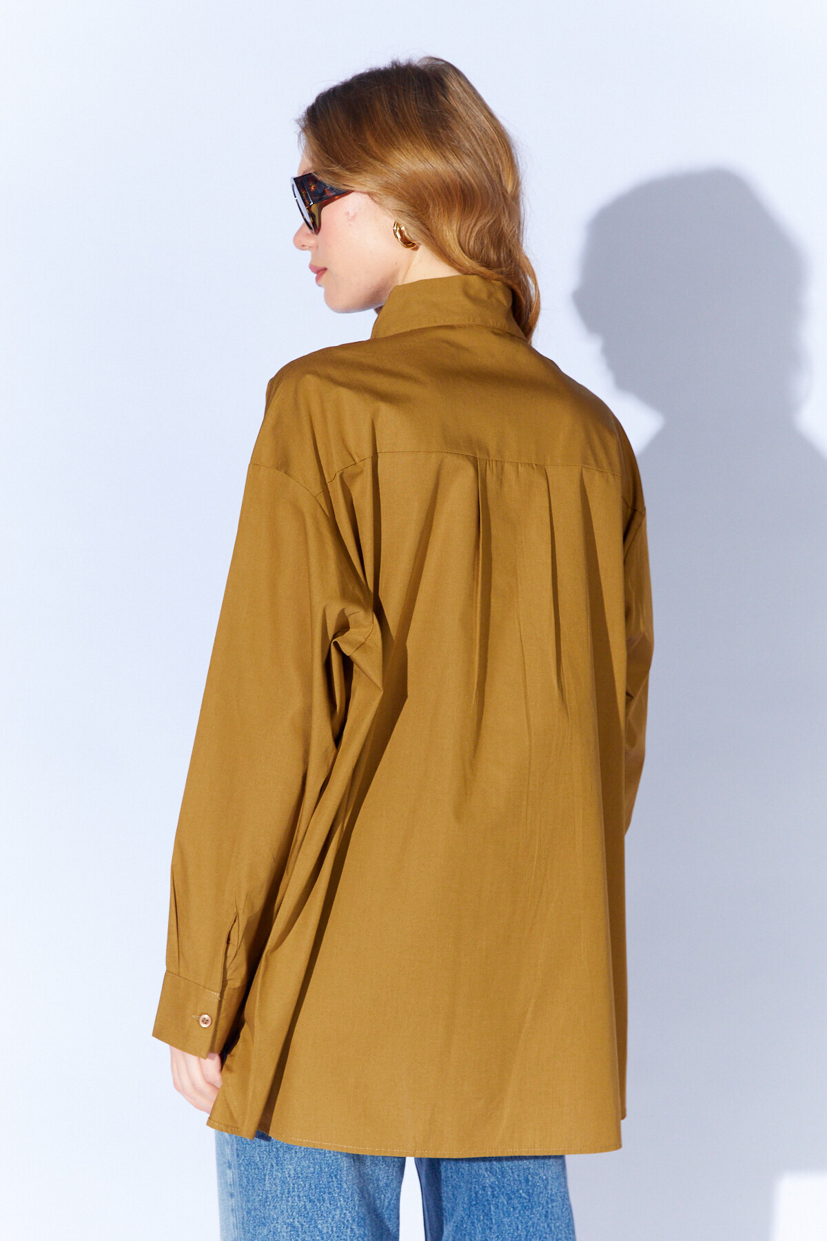 Broş Detaylı V Yaka Poplin Gömlek - Kahve| MKS1610532-1
