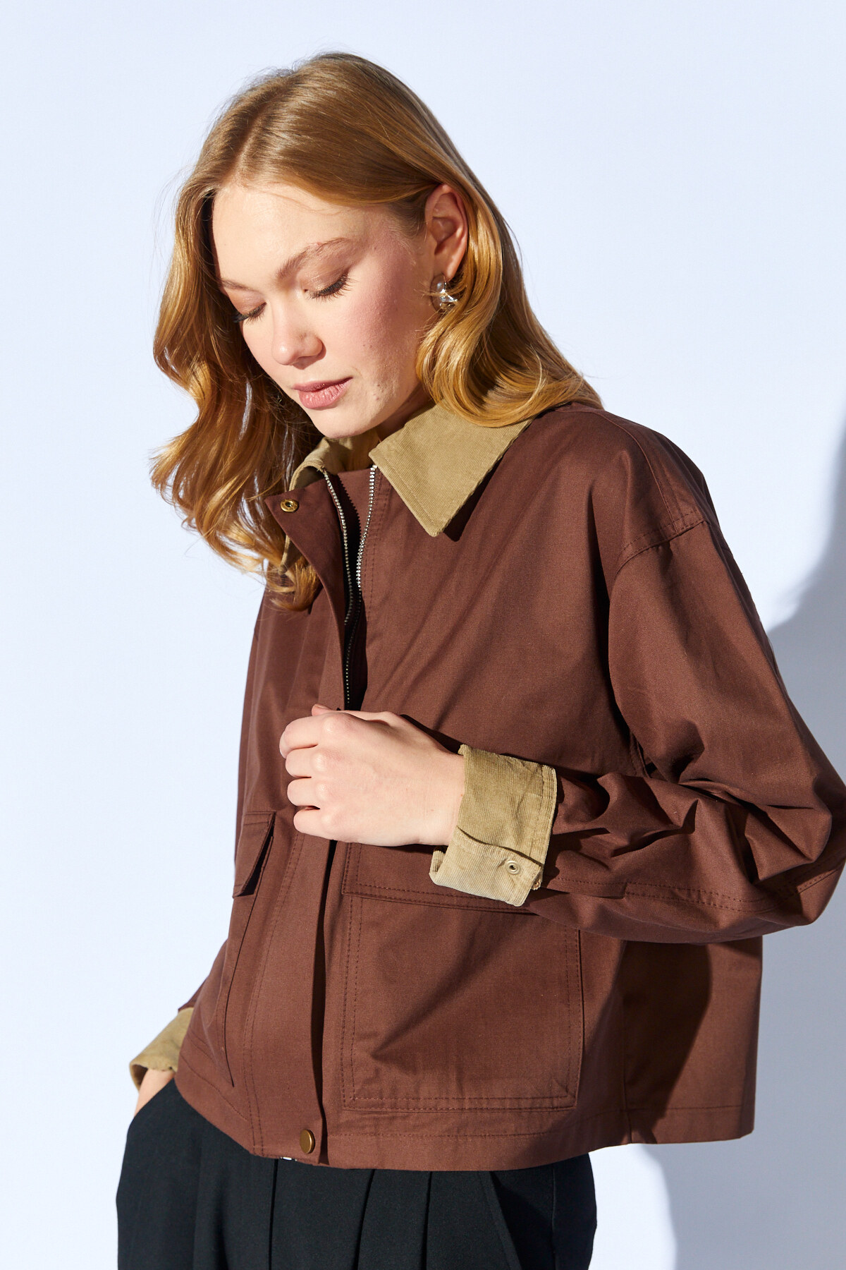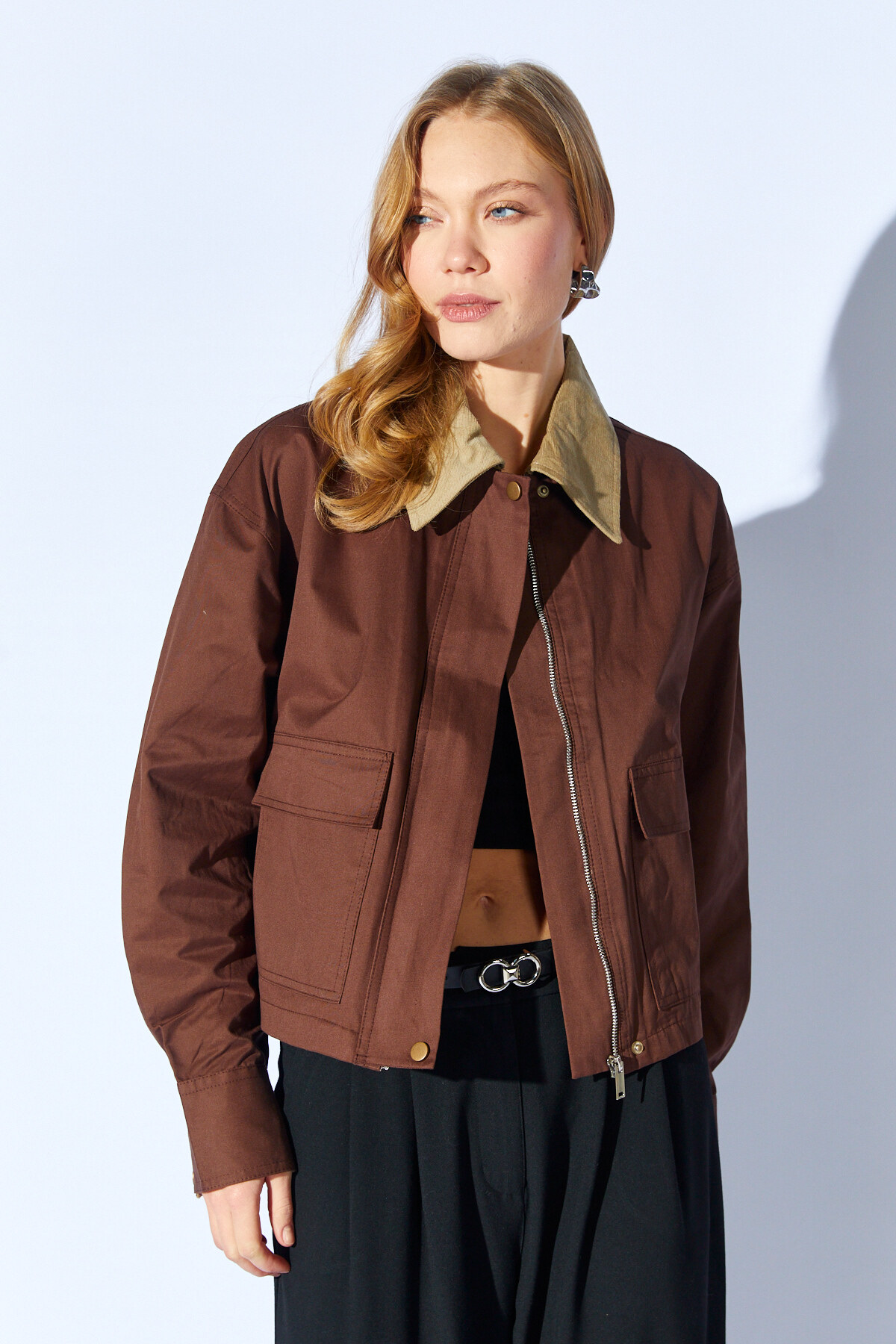 Cepli Kısa Süet Kadın Ceket - Kahve | MKW351284-01