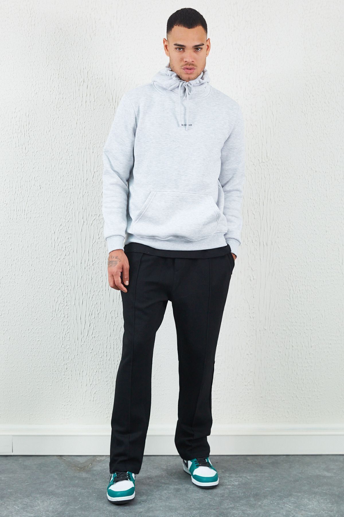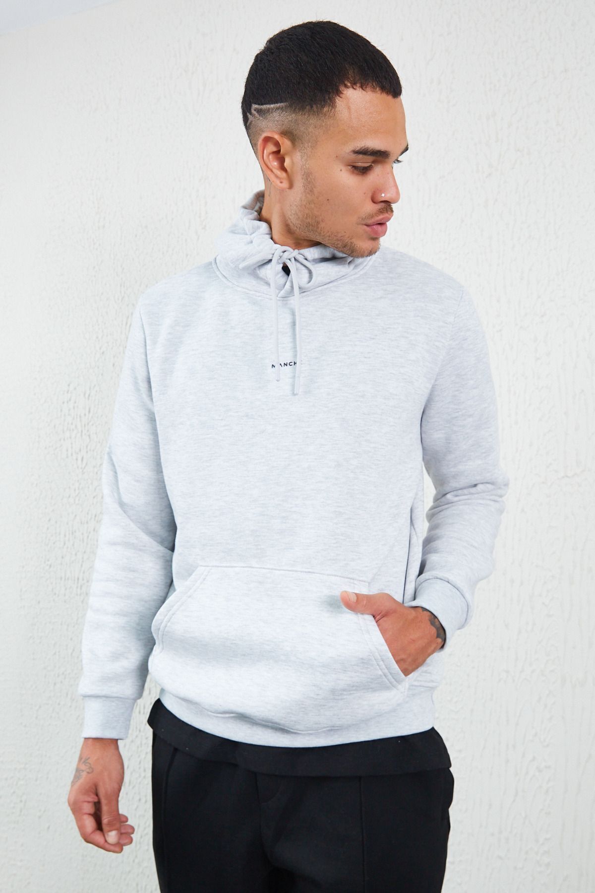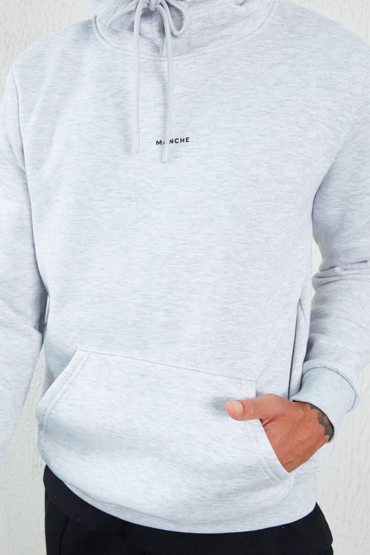 Kar Melanj Kapüşonlu Basic Minimal Baskılı Sweat Füme | MEW227697-01