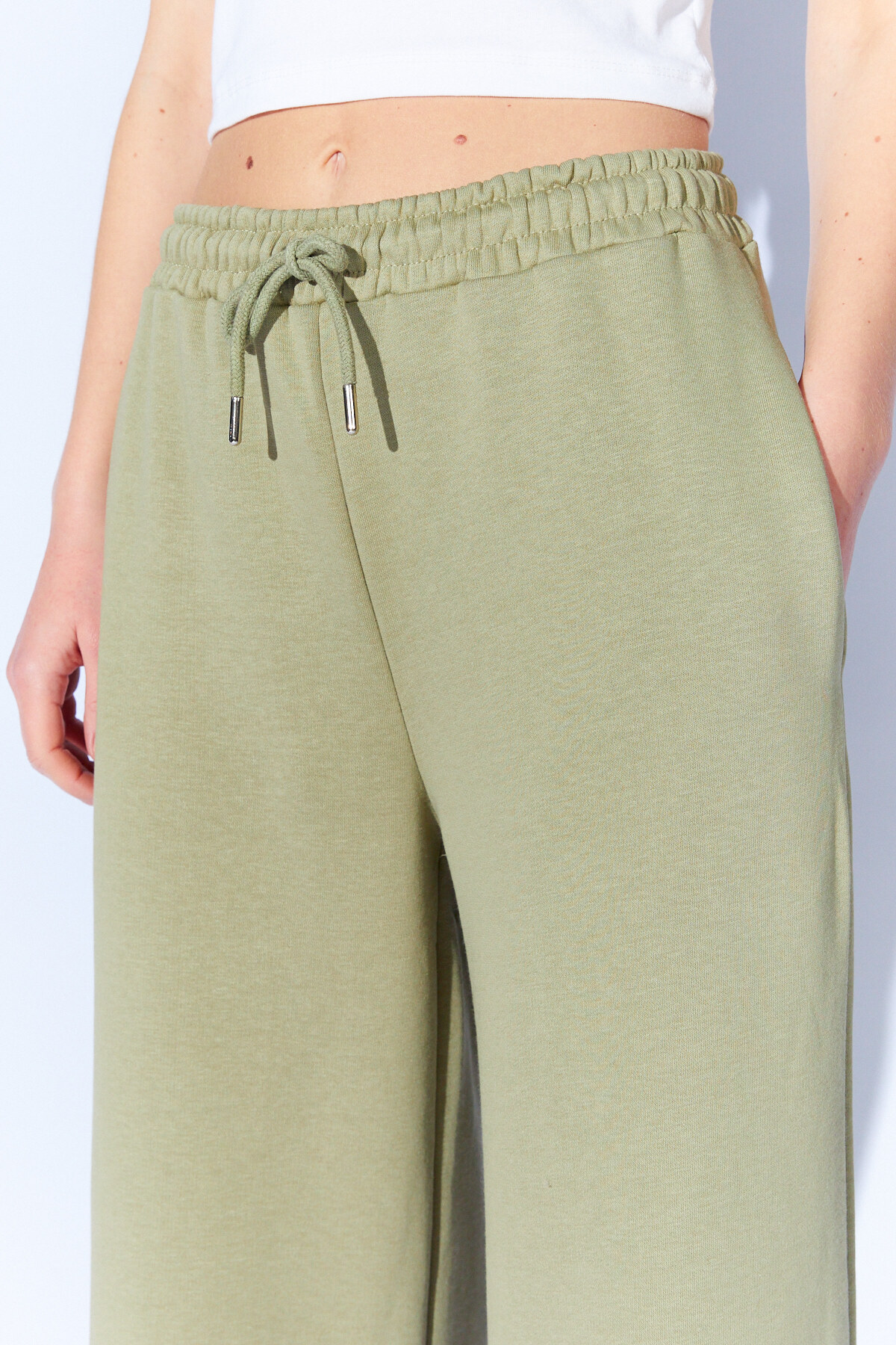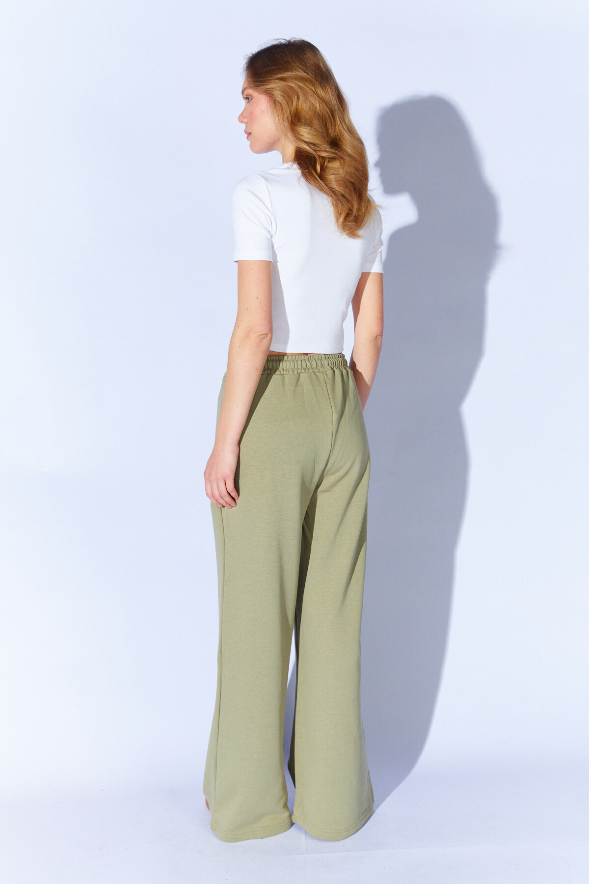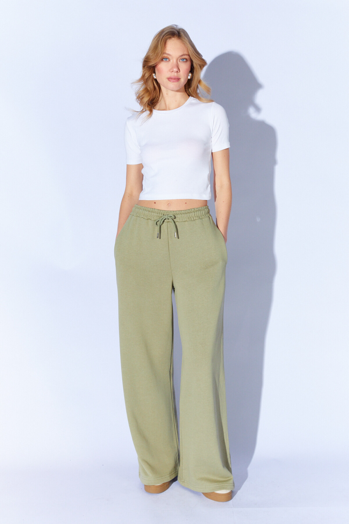 Küf Yeşili Beli Lastikli Kordon Detaylı Palazzo Eşofman | MKW689824-01