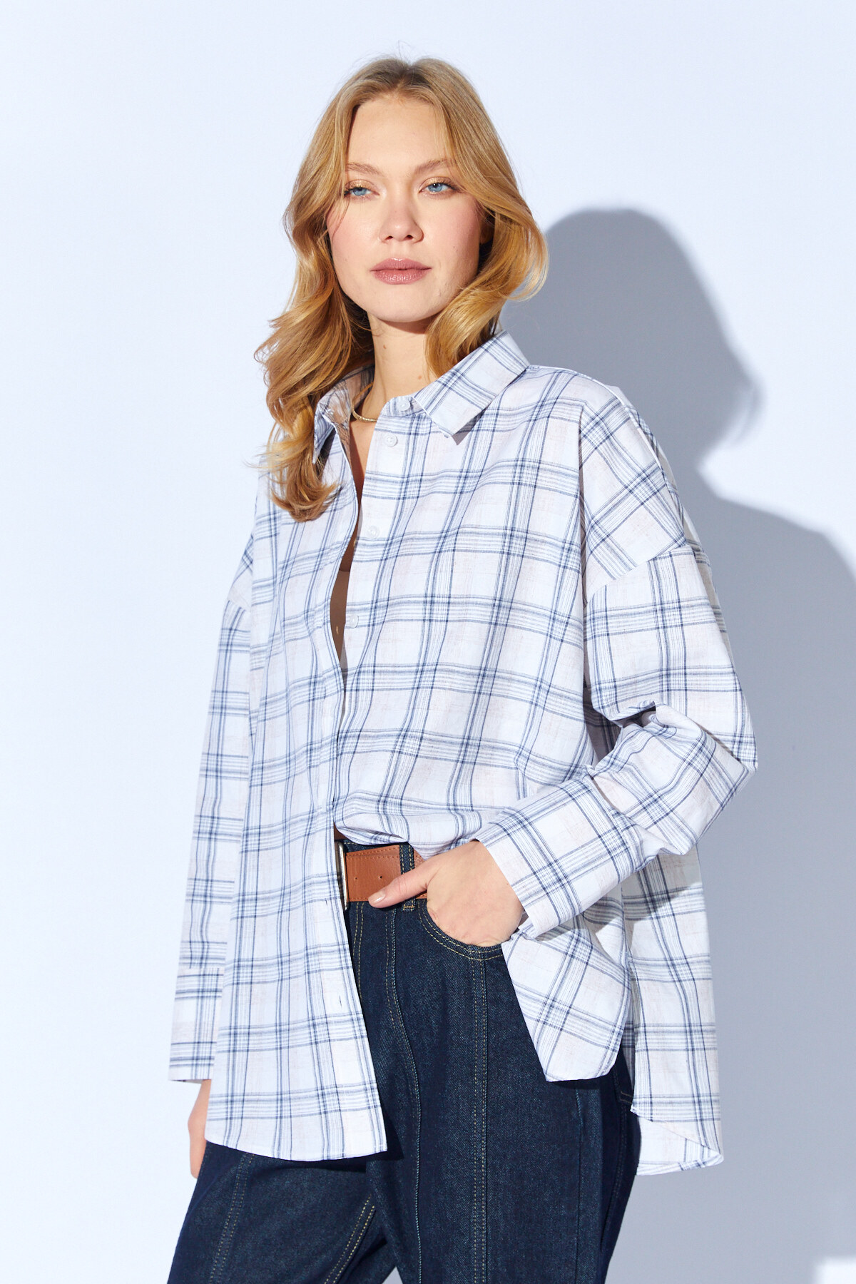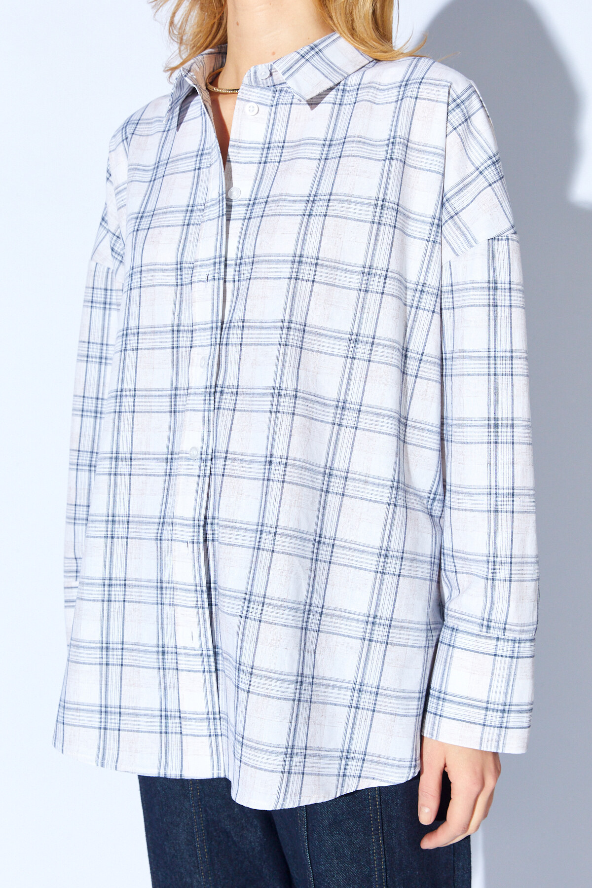 Lacivert Ekose Desenli Oversize Gömlek | MKS1610714-1