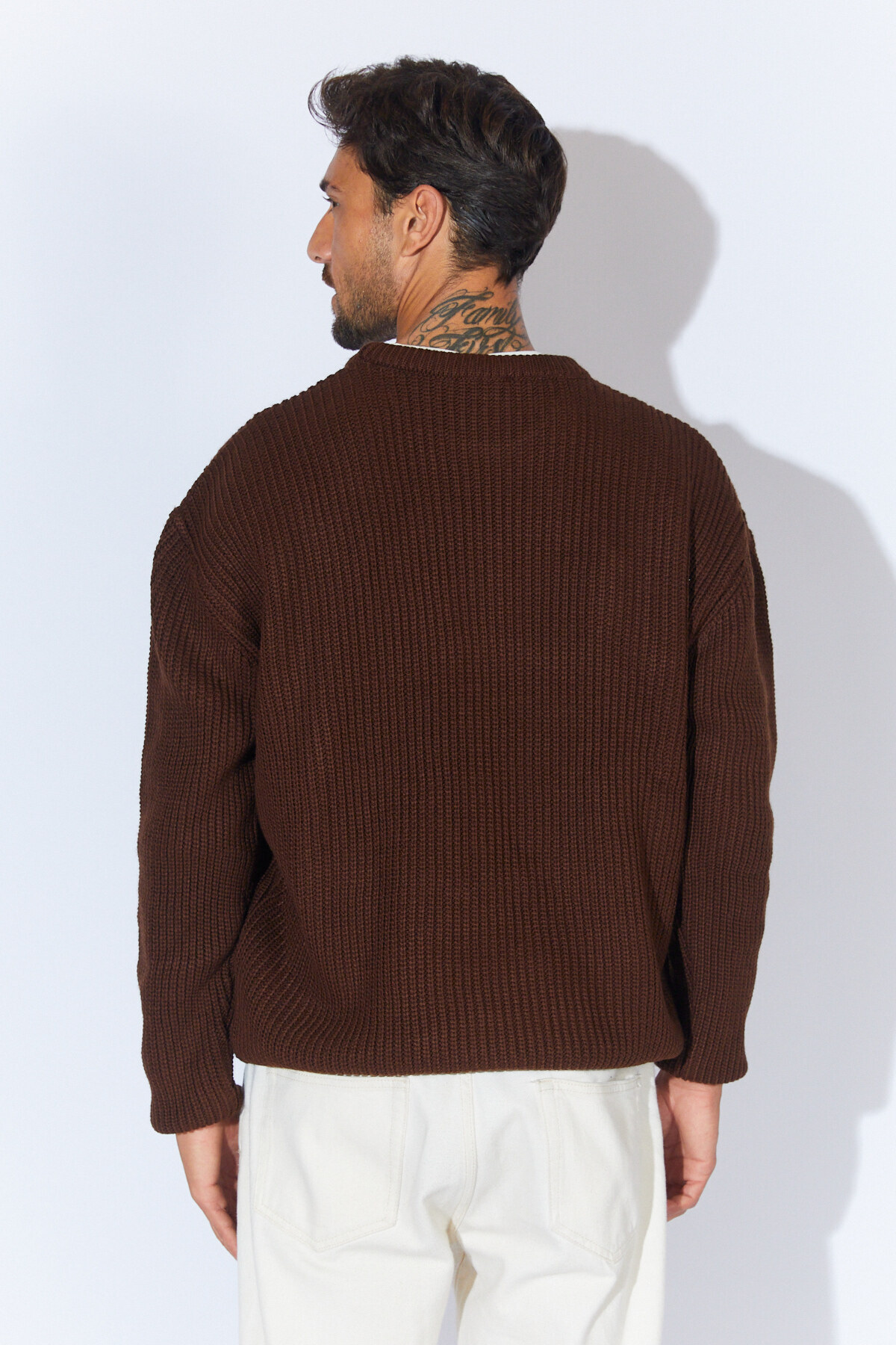 Bisiklet Yaka Oversize Basic Kazak - Kahve | MEW515256-01