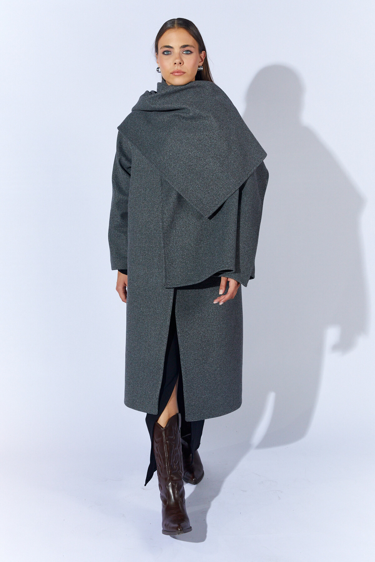 Çıkarılabilir Şal Yaka Oversize Kaşe Kaban - Antrasit | MKW359838-01