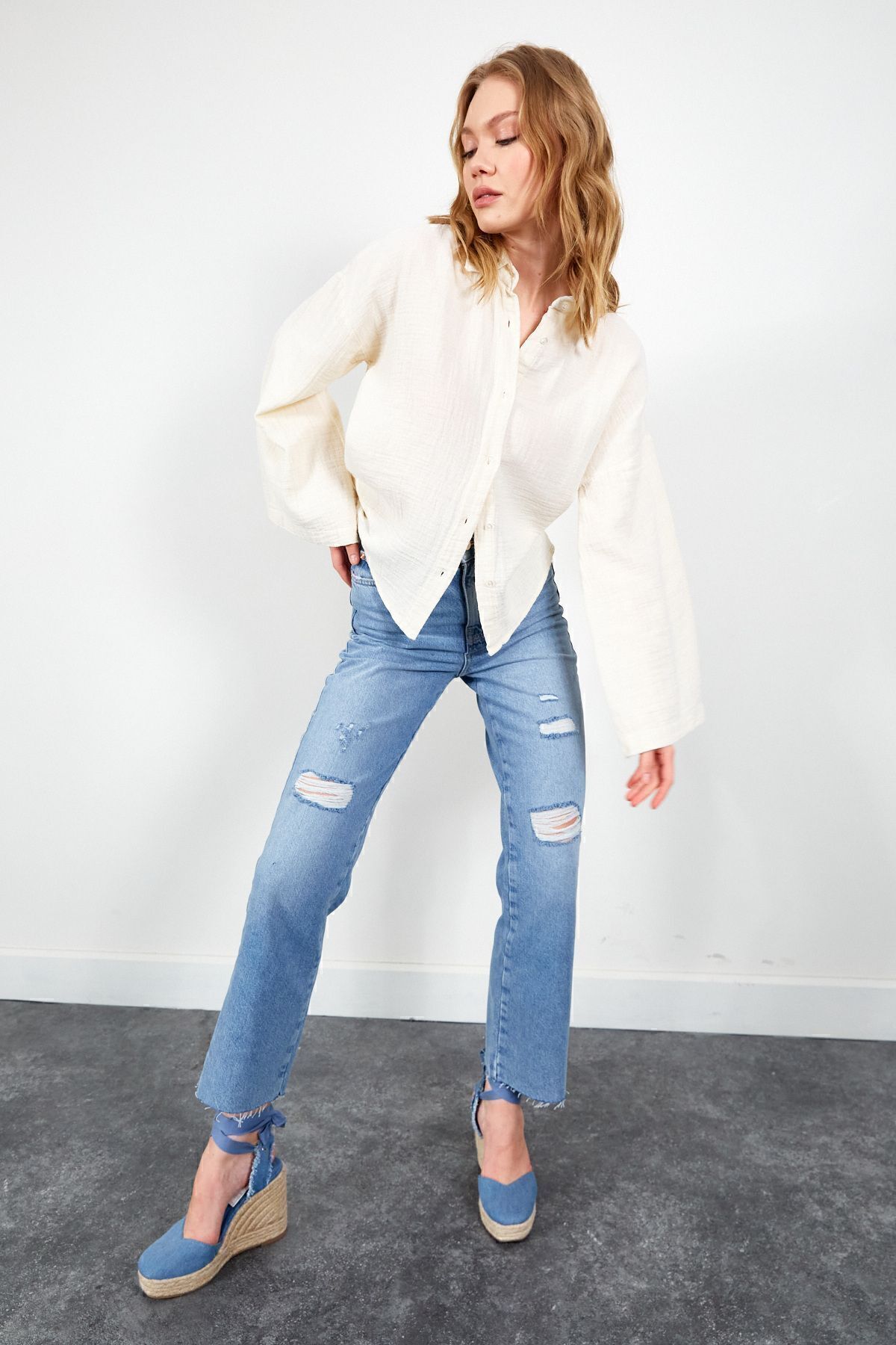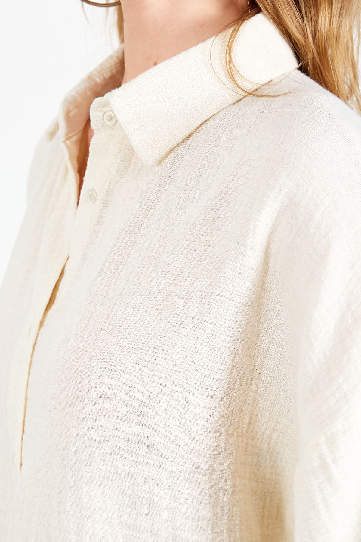 Beyaz Kolları Salaş Kadın Gömlek