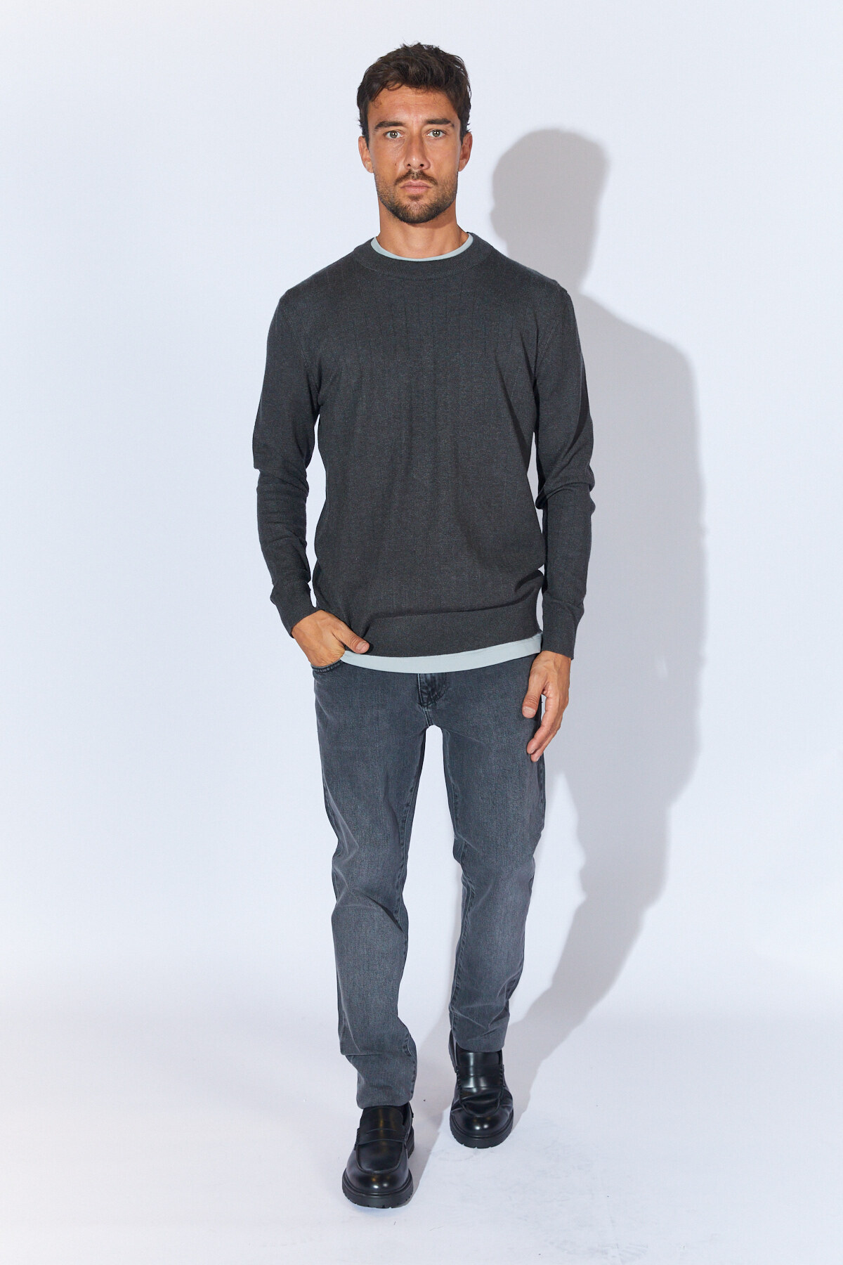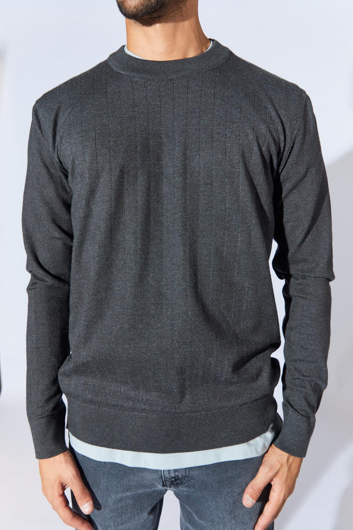 Fitilli Bisiklet Yaka Regular Fit Kazak - Antrasit | MEW515229-01