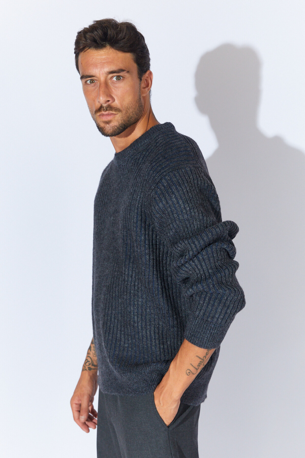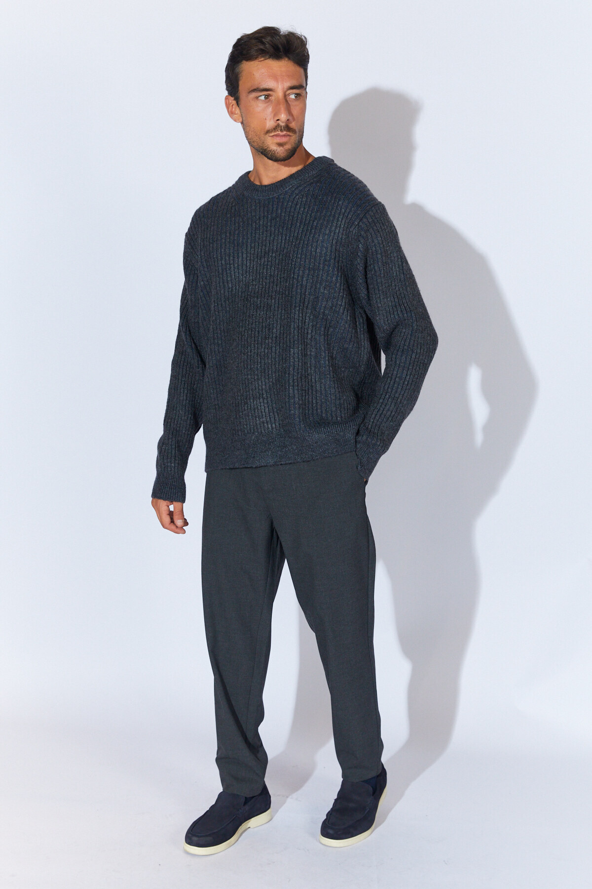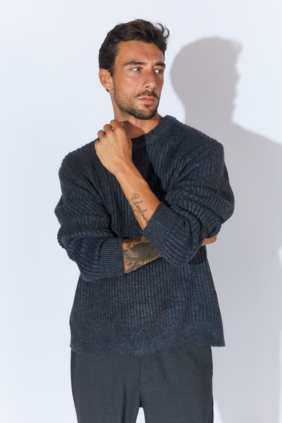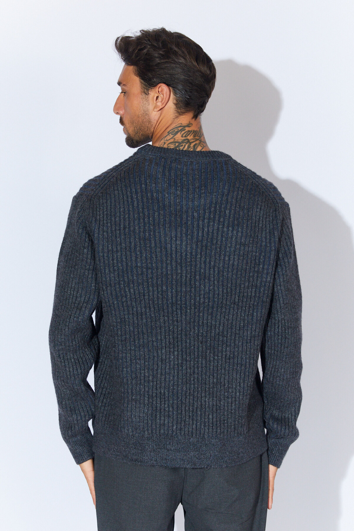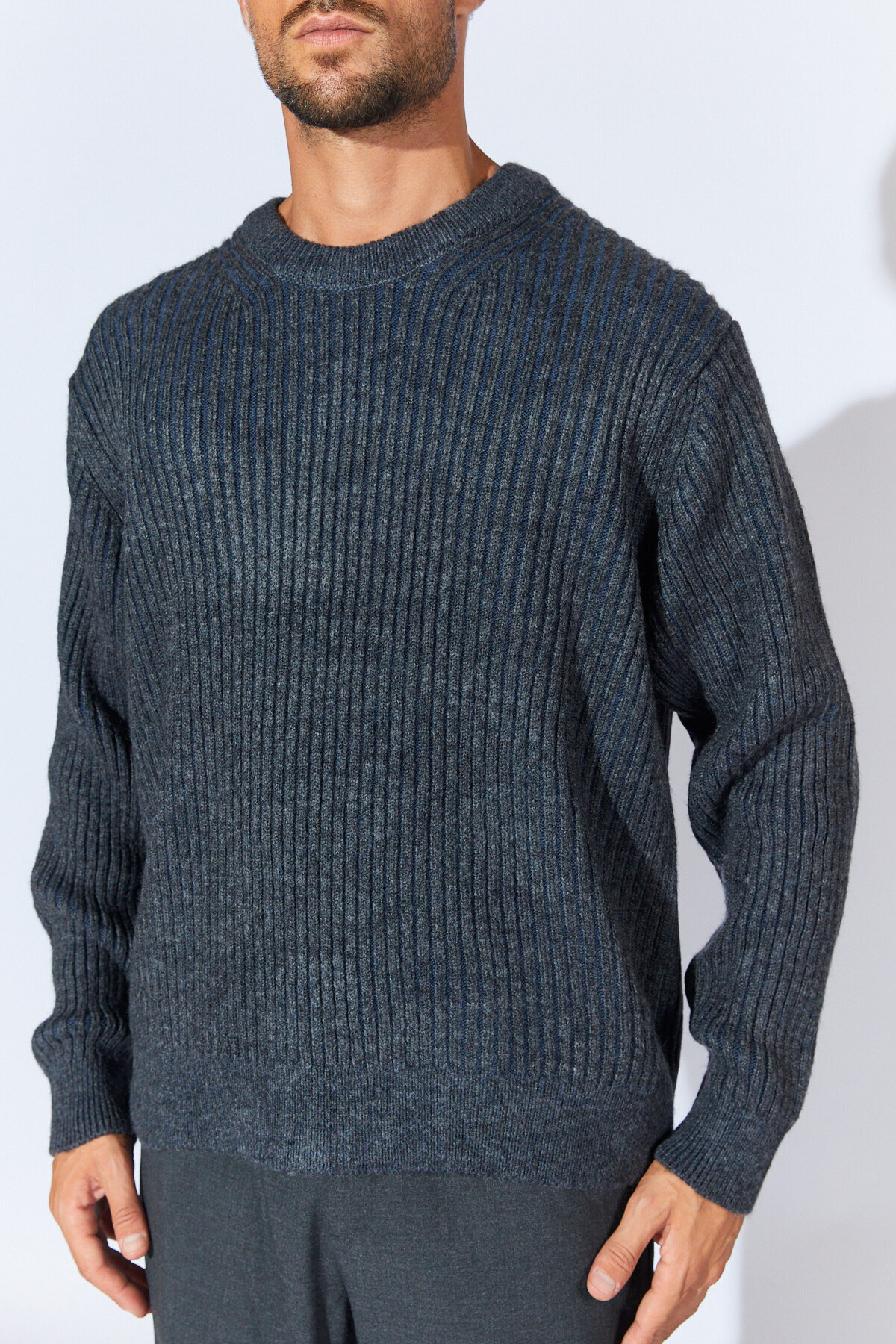 İki Renk Görünümlü Bisiklet Yaka Kazak - Gri-Lacivert | MEW515223-01