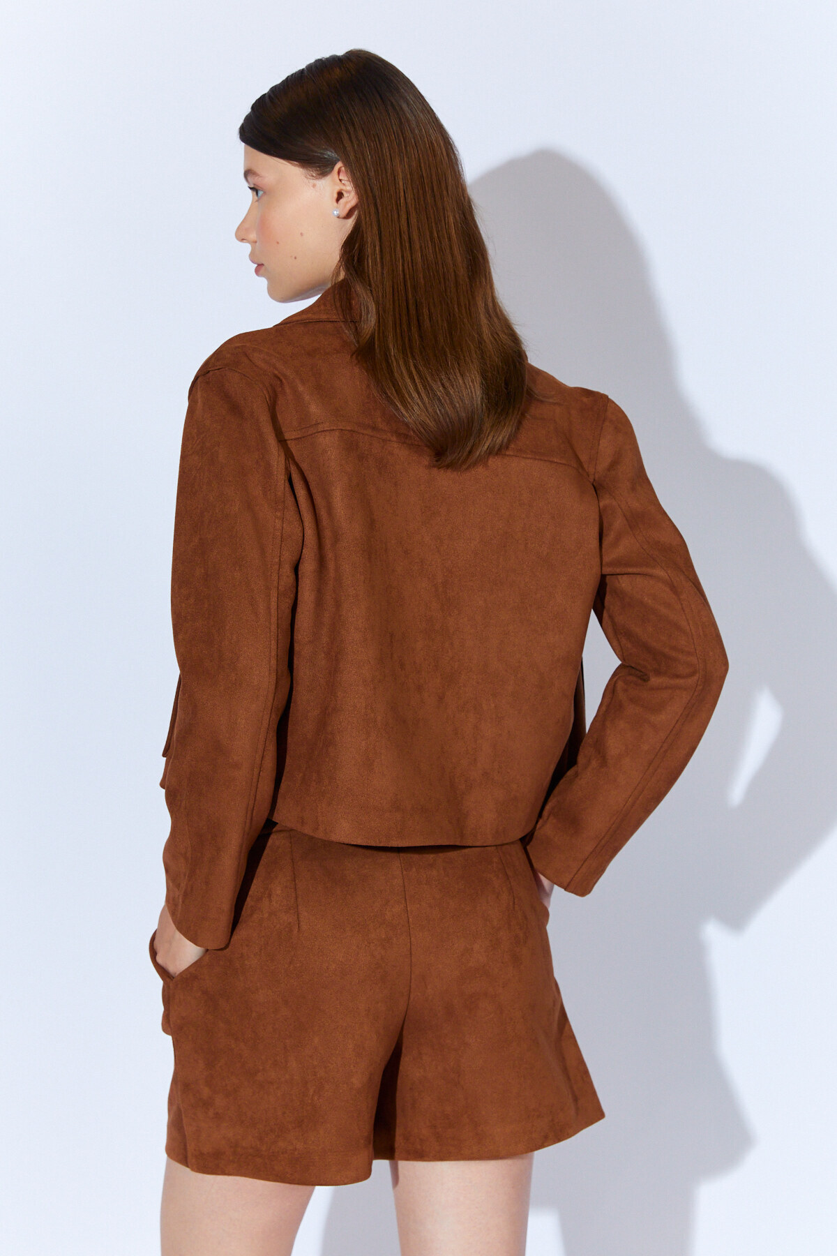 Kendinden Kemerli Kadın Süet Şort - Kahve | MKW674992-01
