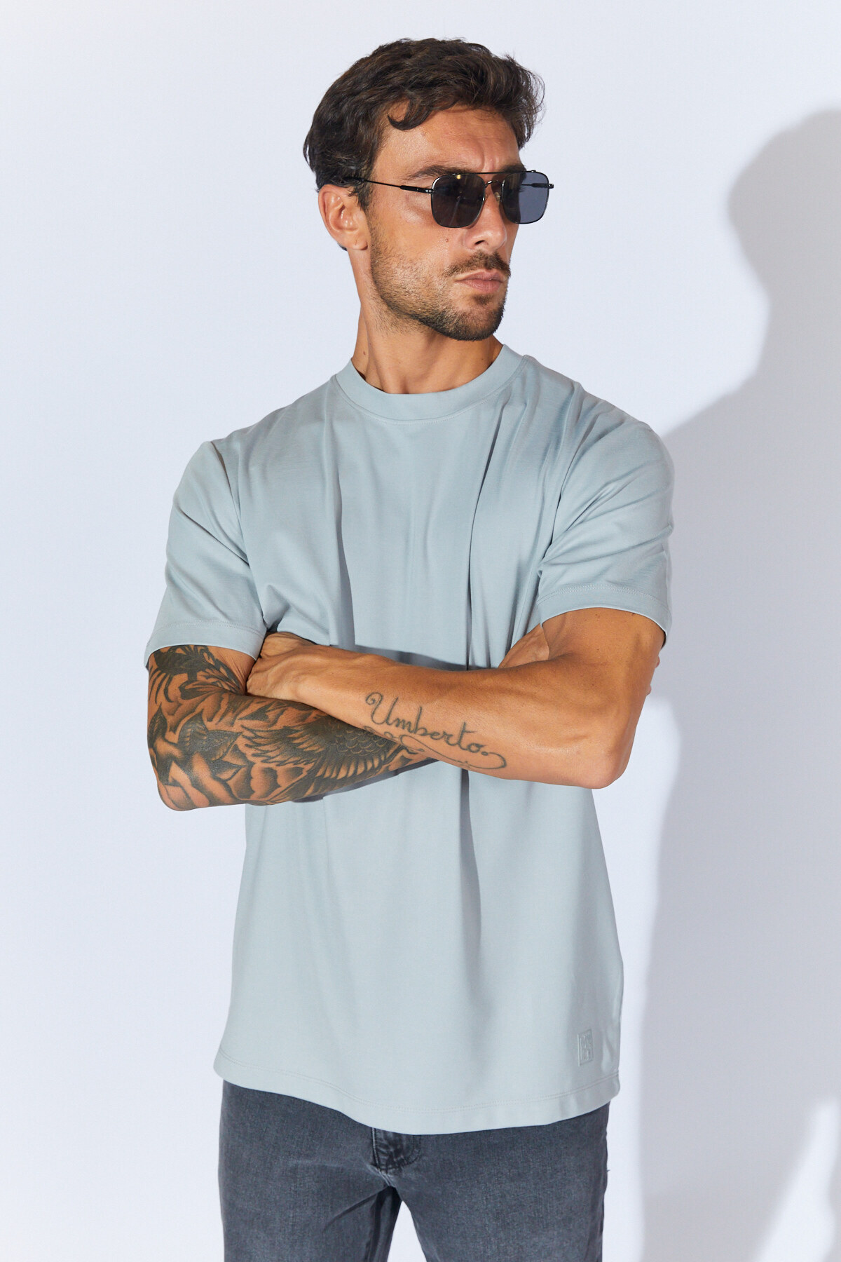 Logo Baskılı Bisiklet Yaka Basic T-Shirt - Gri | MSES215722-1