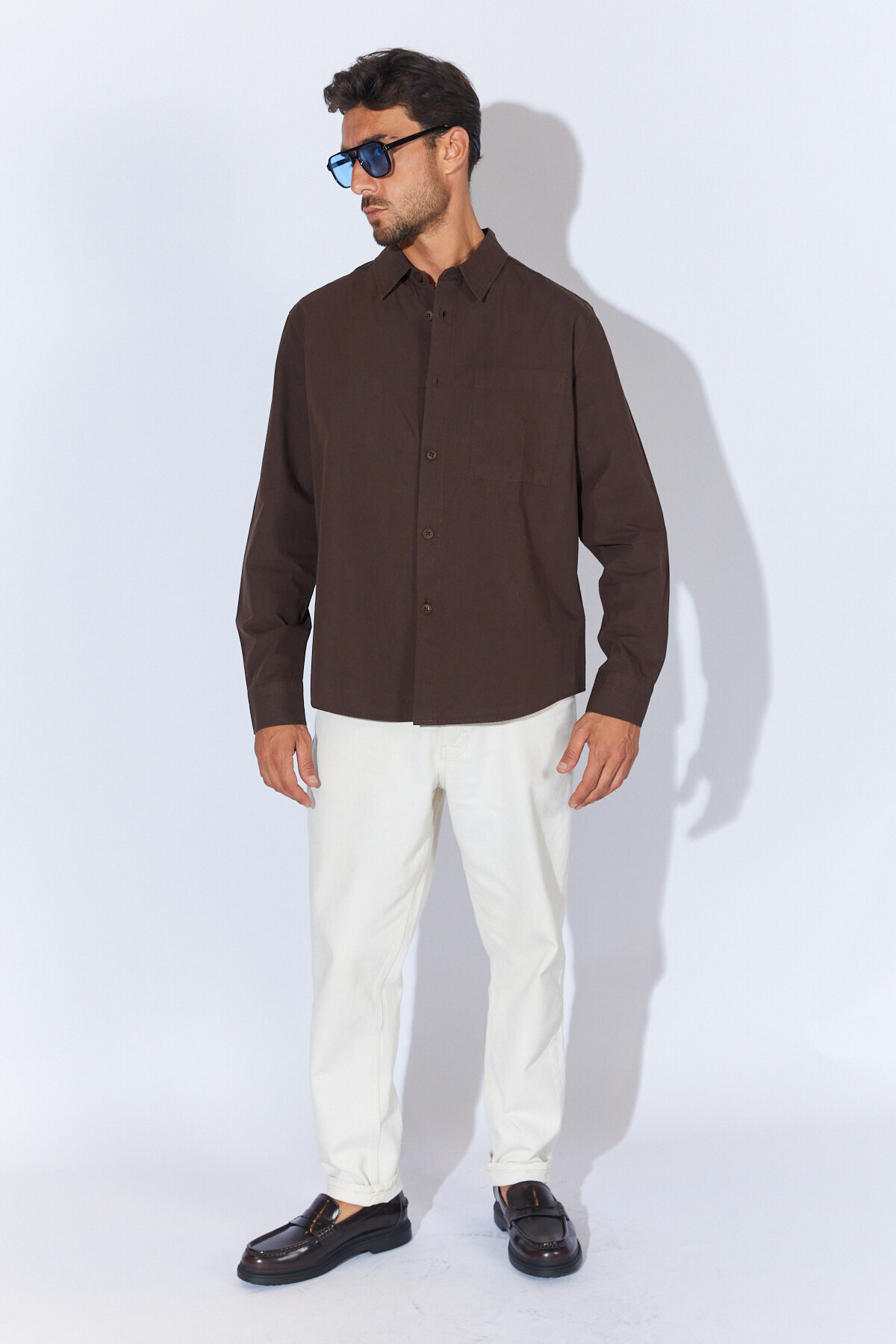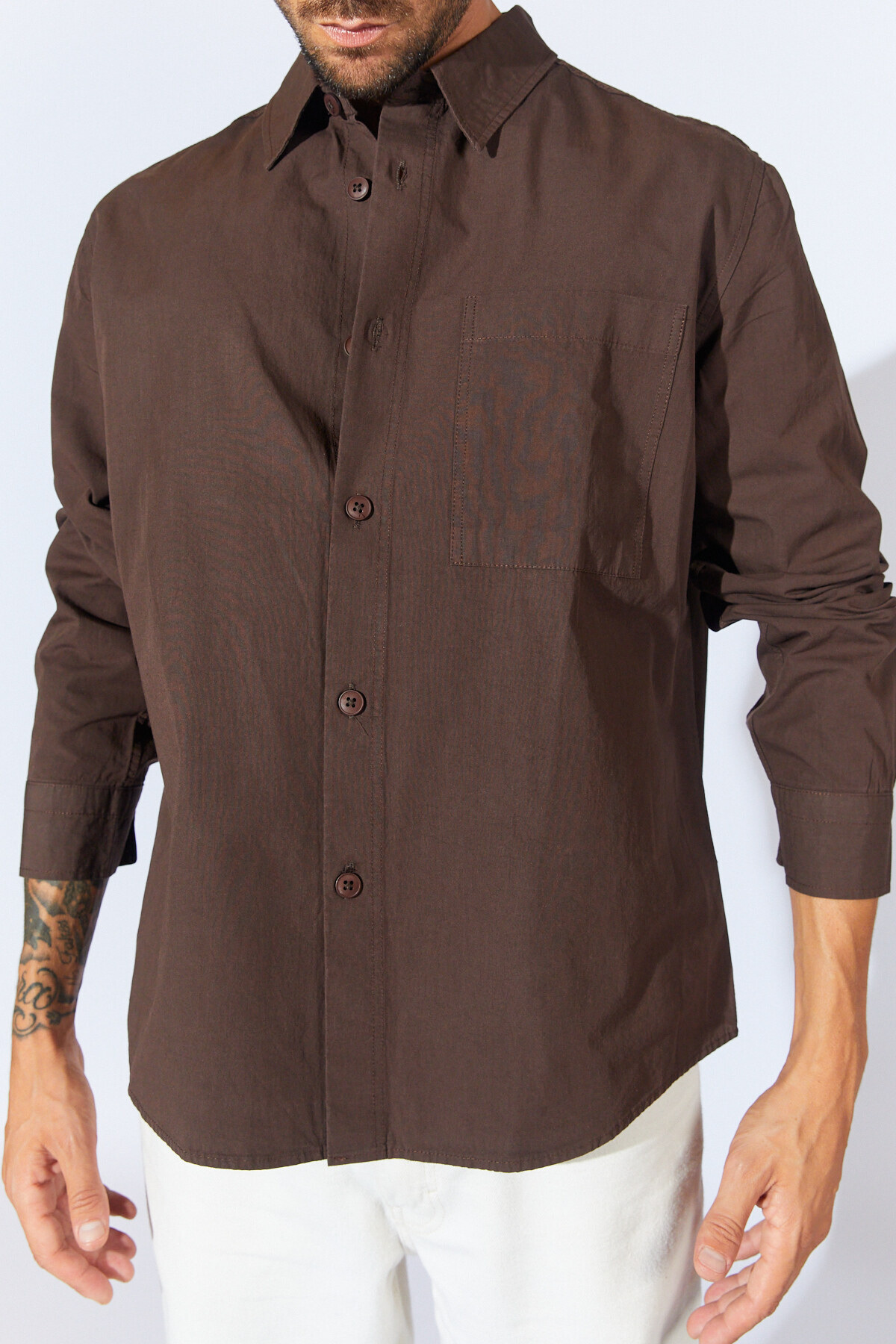 Ürün Detay : Materyal : :%100 Pamuk Manken Ölçüleri : Boy: 185 Cm Göğüs : 97 Cm / Bel : 79 Cm / Kalça: 99 Cm / Omuz :63 Cm Numune Bedeni : M Giyim Tarzı : Sokak Stili Kalıp Bilgisi : Fitted Ürün Detayı : Düz Renk - Kahverengi tonlarındaki zarif tasarımıyla günlük kullanım için ideal bir seçenek sunar.; - Kemersiz tasarımı sayesinde rahat bir kullanım sağlar ve farklı kıyafet kombinlerine kolayca uyum sağlar.; - Type 1 yıkama talimatına uygun şekilde kolayca temizlenebilir, böylece gömleğinizin ilk günkü gibi kalmasını sağlar.; - Yetişkinler için tasarlanmış olup, geniş beden skalası ile her vücut tipine uygun seçenekler sunar.; - Sürdürülebilirlik detayına sahip olmaması, çevre dostu tercihler arayanlar için dikkat edilmesi gereken bir noktadır.; - Casual ortamlarda rahatlıkla tercih edilebilecek düz desenli tasarımıyla şıklığı günlük hayata taşır.; - %100 pamuk materyali sayesinde nefes alabilir yapıda olup gün boyu konforlu bir deneyim sunar.; - Gömlek yaka detayı ile klasik ve modern çizgileri harmanlayarak her ortama uygun bir görünüm kazandırır.; - Uzun kollu tasarım, mevsim geçişlerinde ideal koruma sağlar ve şık duruşunu korur.; - Erkekler için özel olarak tasarlanmış olup, TR menşei garantisiyle kaliteyi ön plana çıkarır.