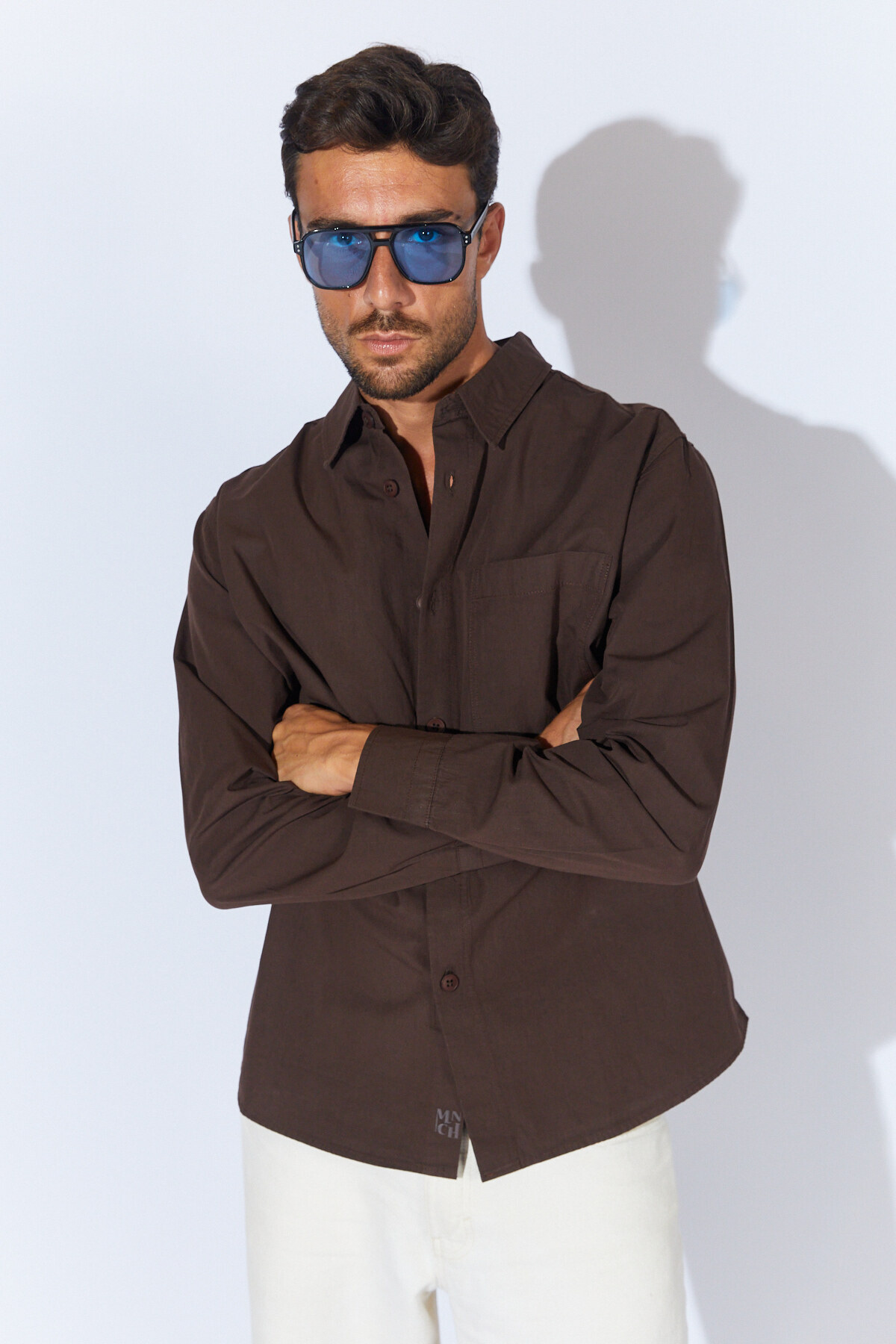 Logo Baskılı Tek Cepli Gömlek - Kahve | MEW123011-01