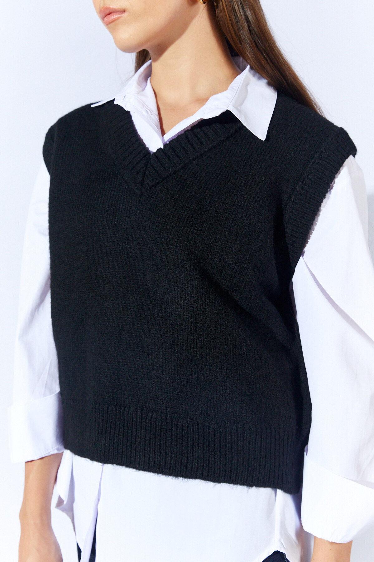 Siyah U Yaka Salaş Triko Basic Kazak | MKW535342-01