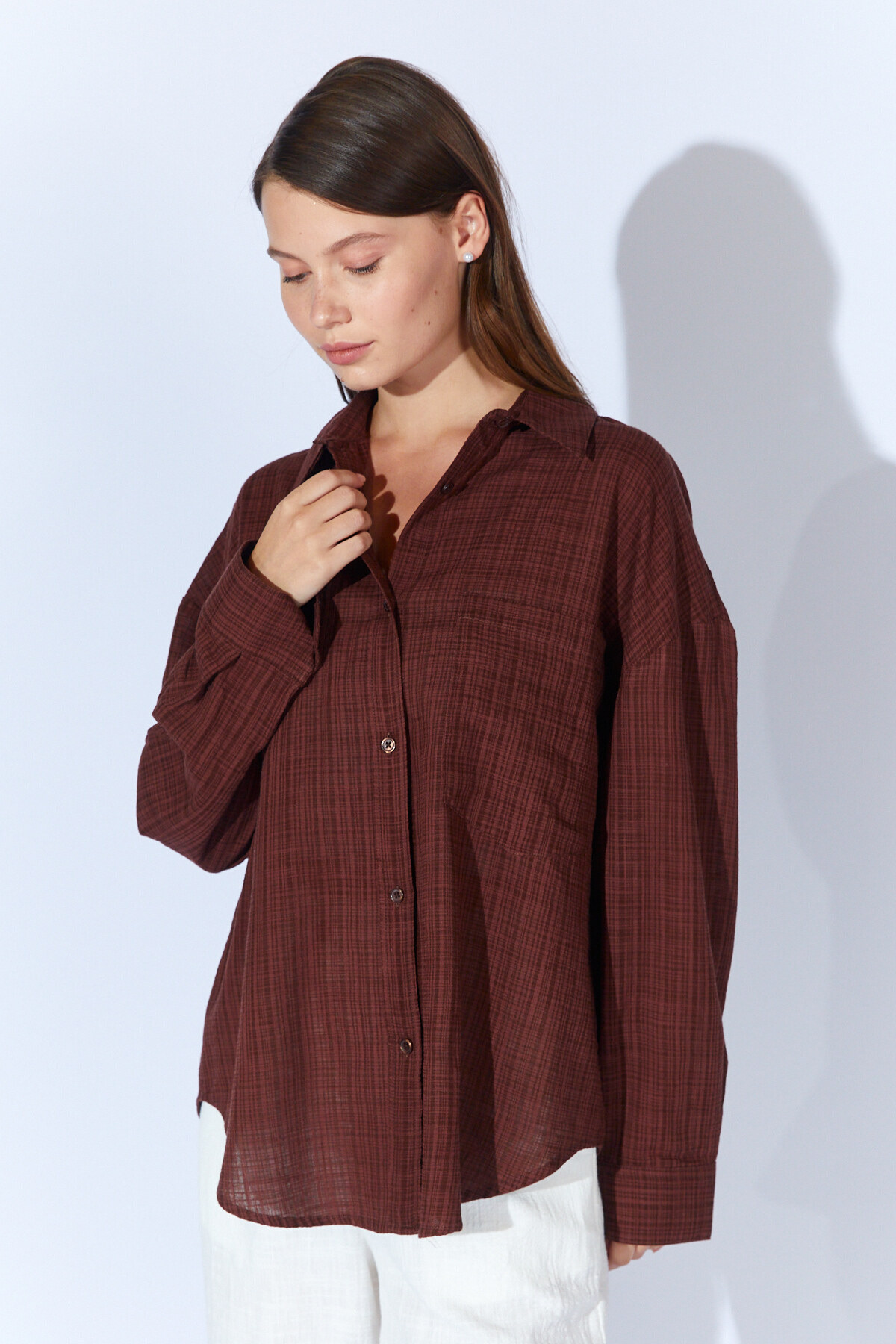 Ürün Detay : Viskon Keten Yıkamalı Soft Dokulu Kadın Gömlek | MKS1610013-1