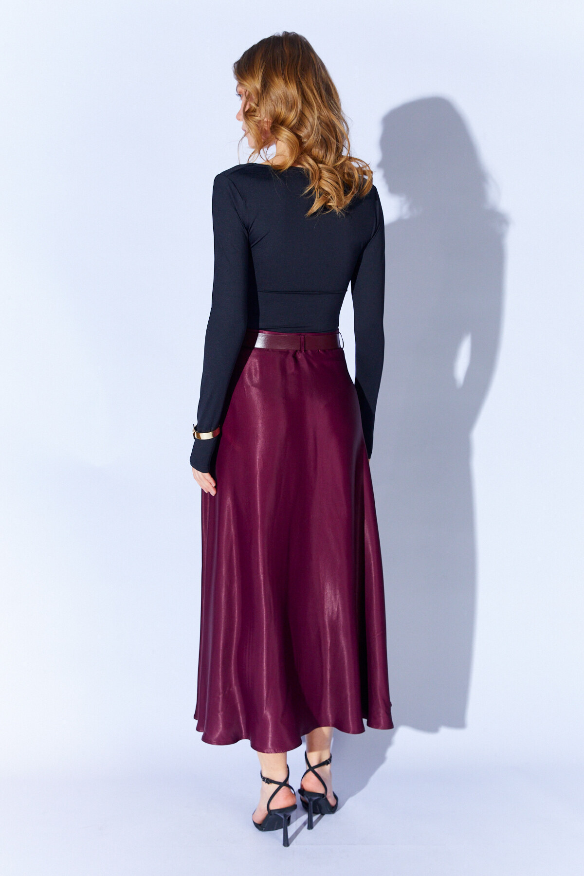 Mürdüm Kemer Detaylı Saten Etek | MKS2910743-1