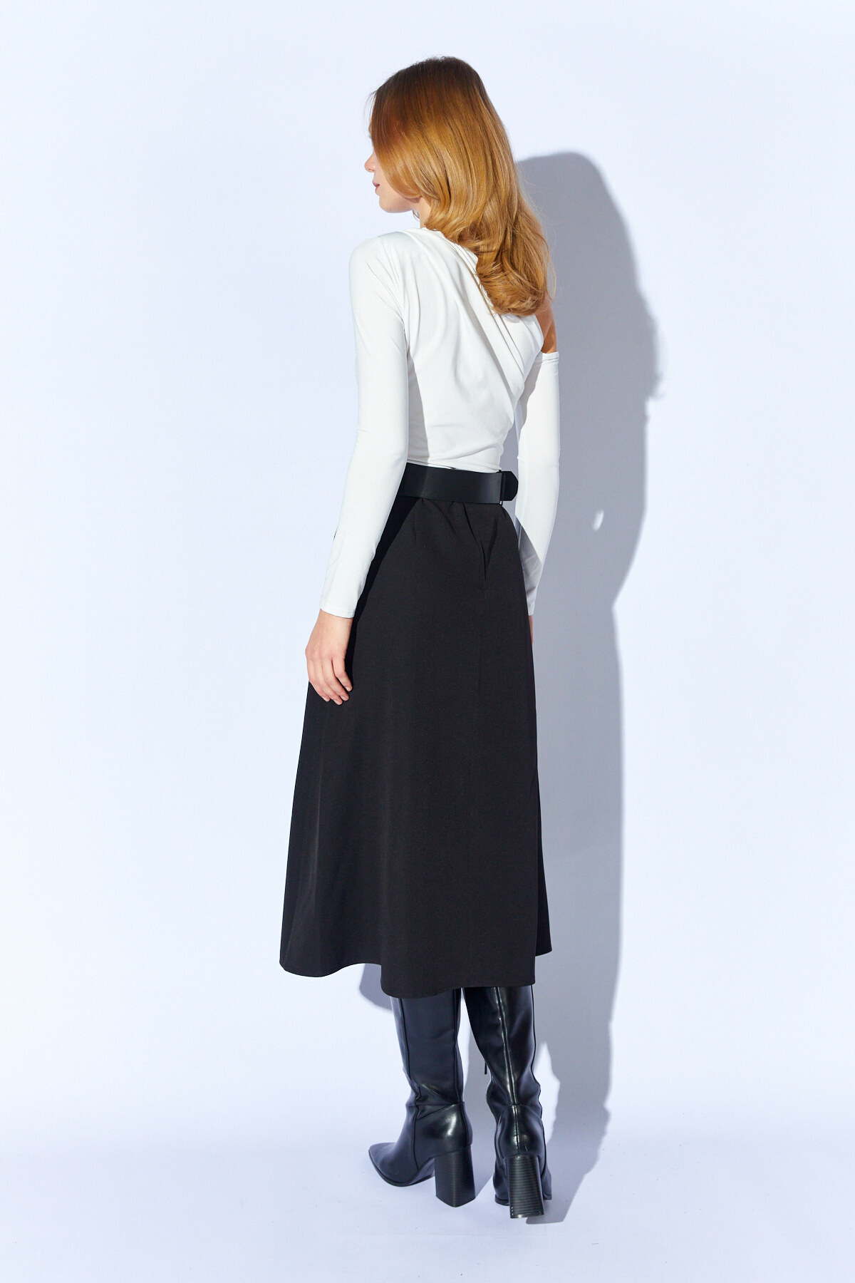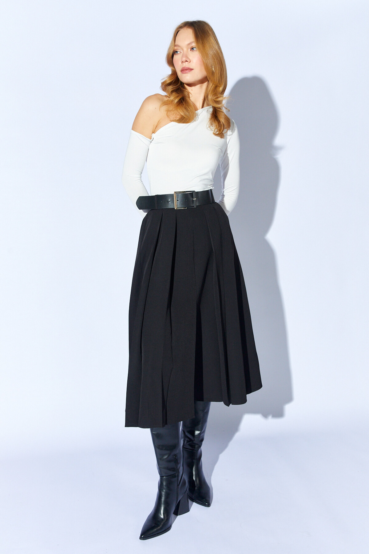 Kalın Kemer Detaylı Pilili Midi Etek-Siyah | MKS2910555-2