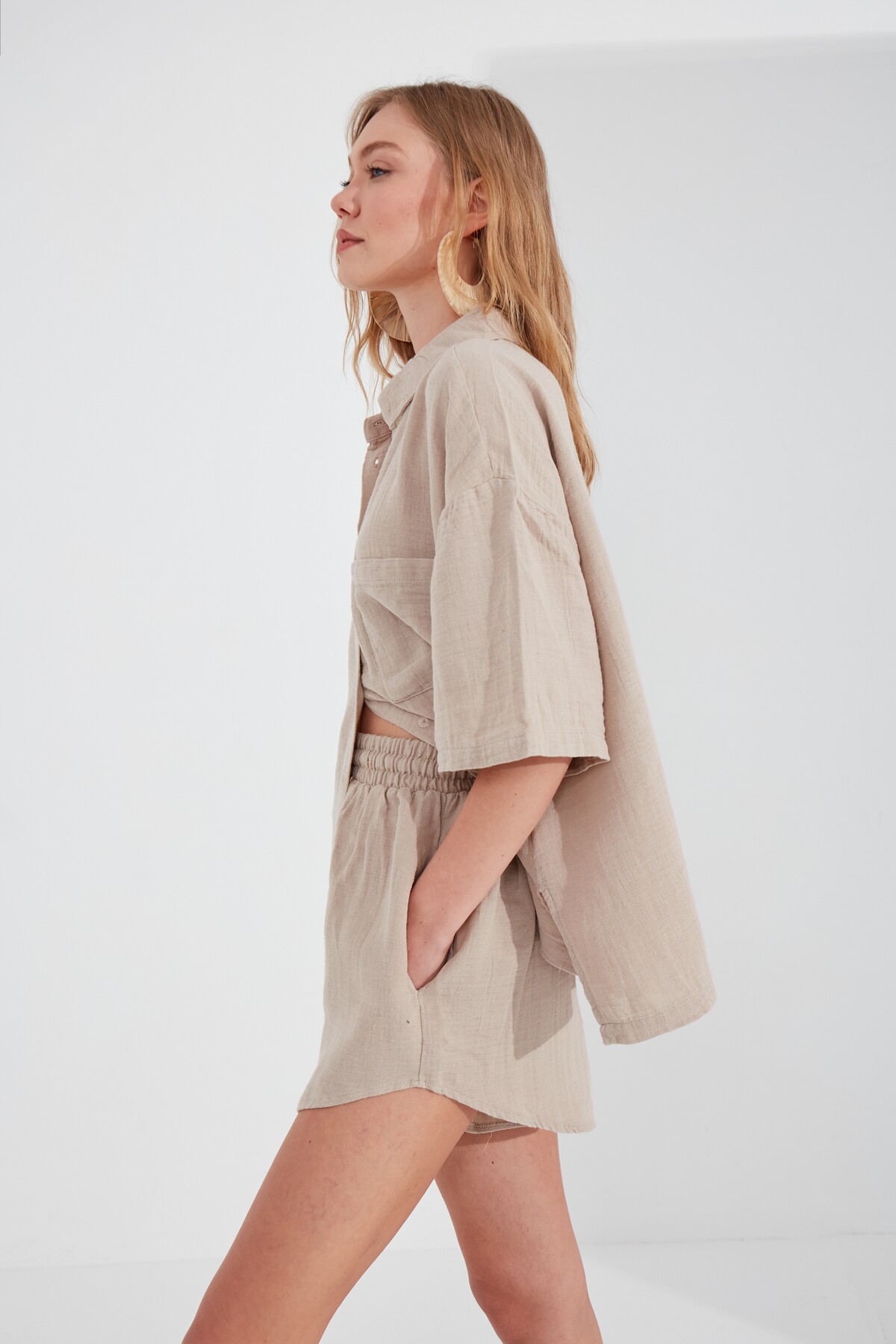 Gömlek şort 2,li Oversize Takım | Taş MKS189596-01