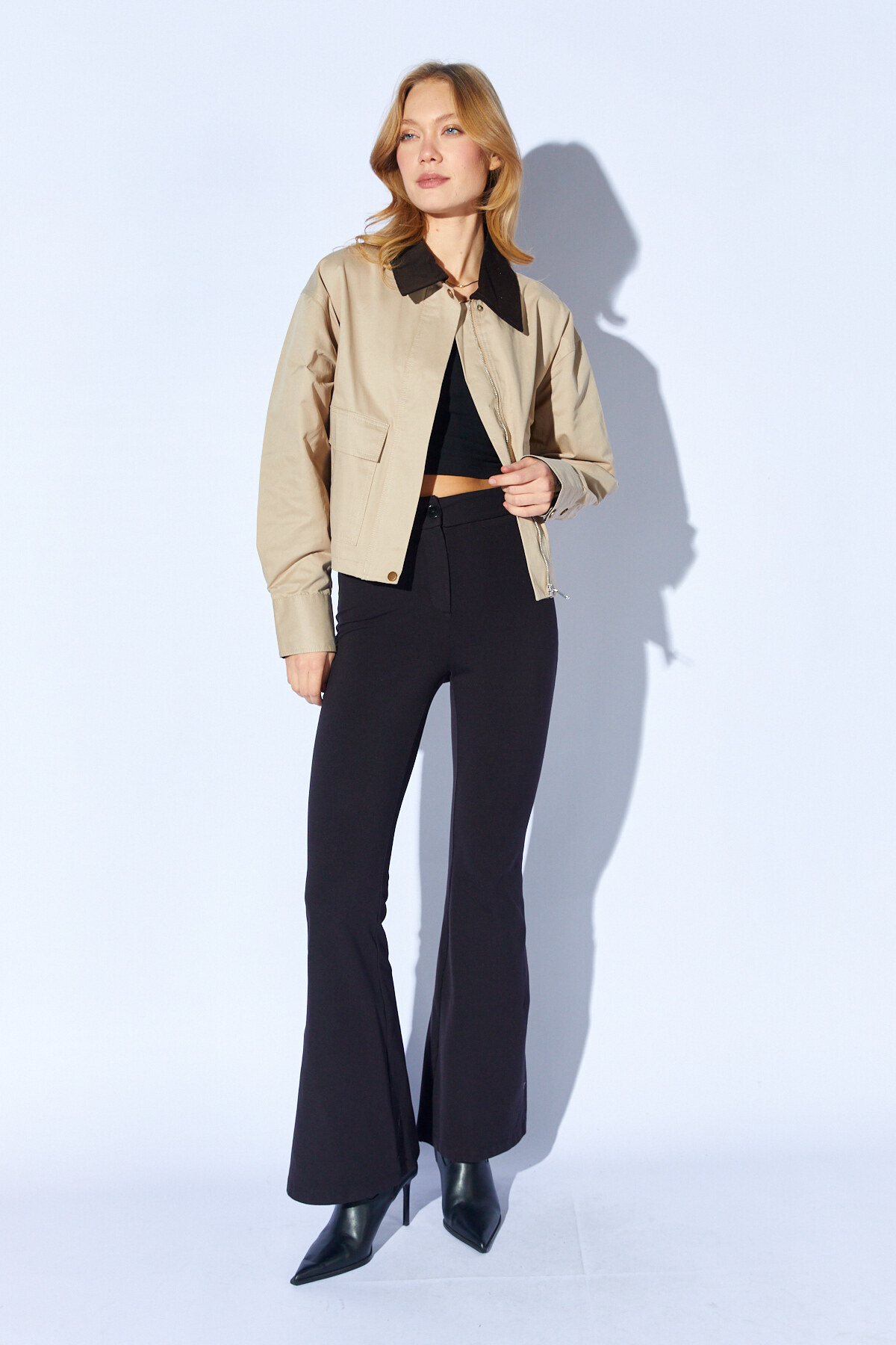 Taş Yaka ve Manşet Kadife Garnili Kısa Trençkot | MKW351518-01